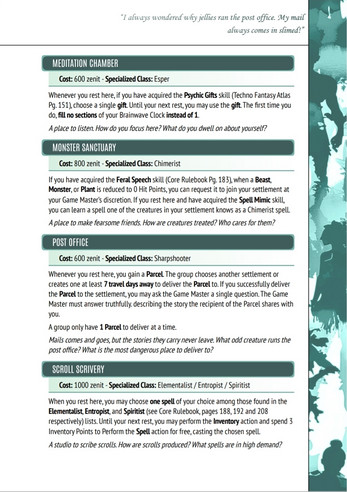 The Cities and Settlement expansion was designed with Natural Fantasy games in mind, where the smaller scope and focus on villages is helpful for this style of gameplay. Abyss games especially benefit from their focus on a single settlement with a layered dungeon nearby. However, several settlement options also favour those who wish to travel, making this accessible for any style of game!